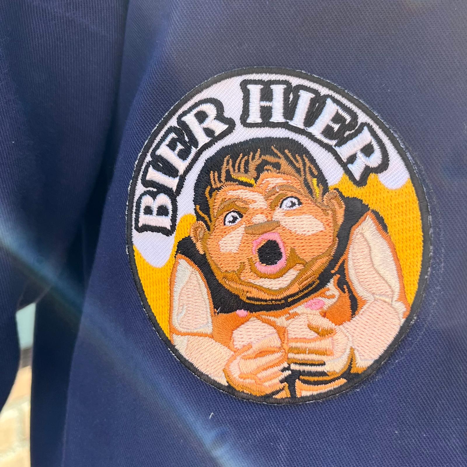 Dit vrolijke embleem van Hollebolle Gijs met de tekst "Bier Hier" is perfect voor op je kiel tijdens carnaval. Een echte blikvanger die elke carnavalsoutfit naar een hoger niveau tilt!